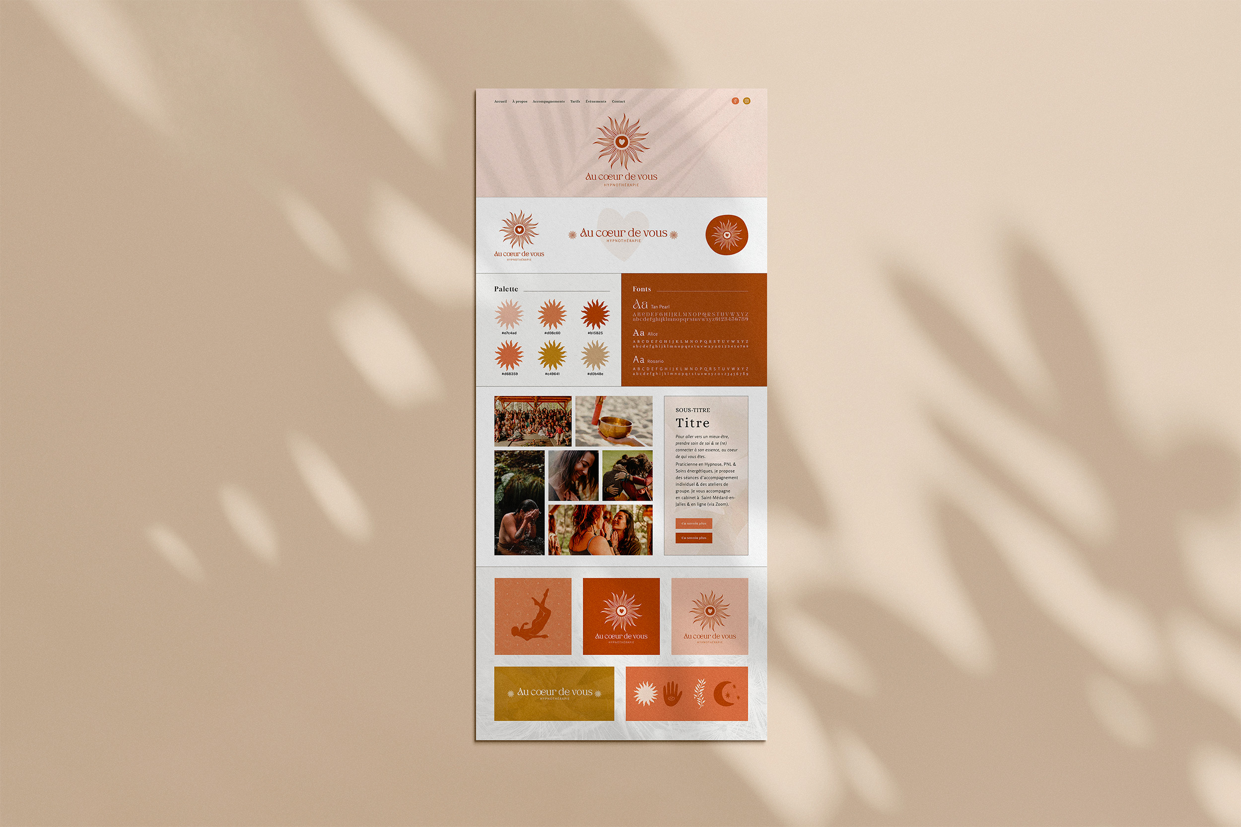 À partir de la direction validée, je conçois votre univers graphique. Je crée le logo et développe tout le système visuel : palette, typographies, éléments graphiques et atmosphère.